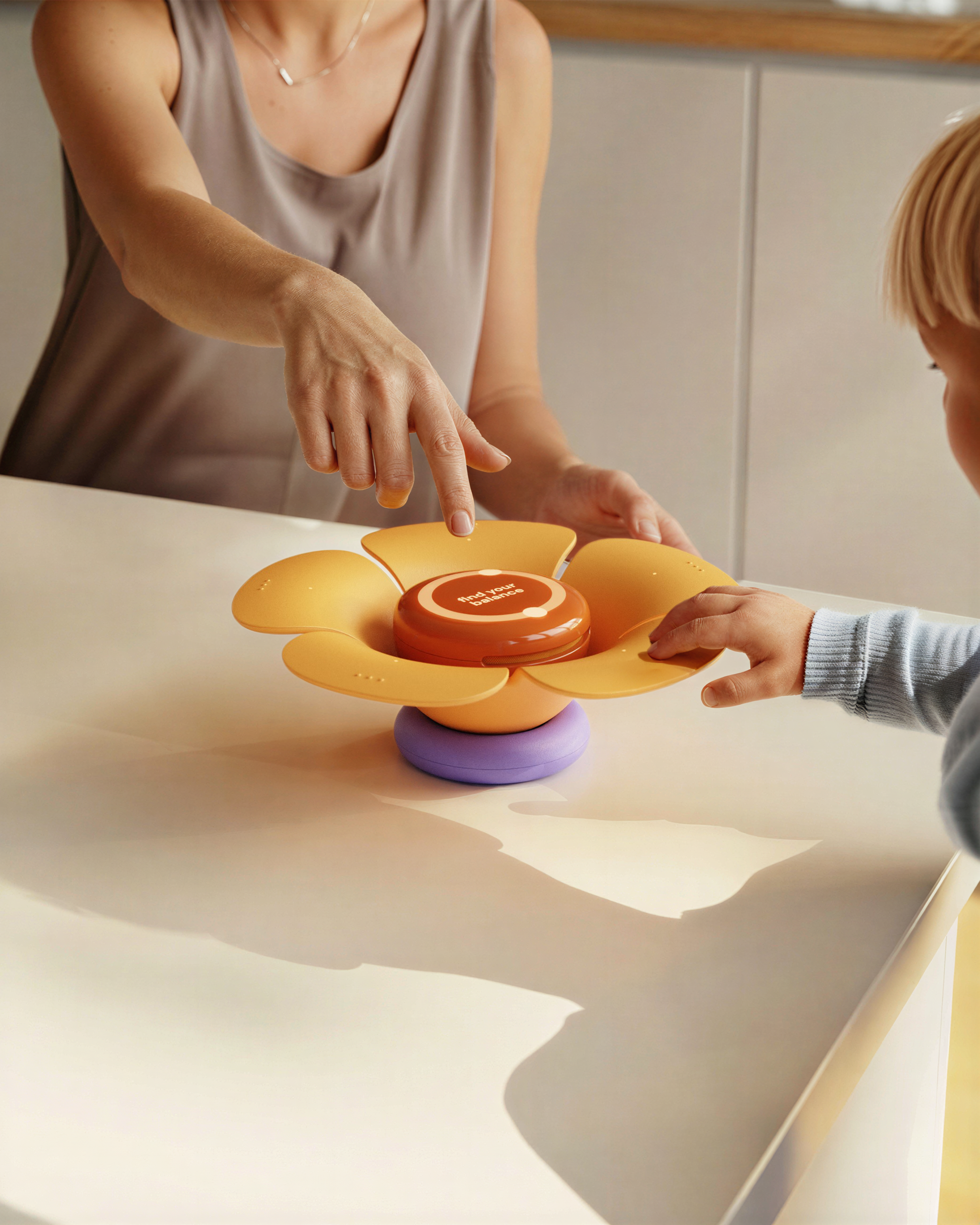 Connect, is an AI companion designed to encourage conversation. Through touch-sensitive petals and guided prompts, it helps children express themselves and strengthens communication with parents or primary caregivers. See more at https://www.morrama.com/projects/mindful-ai-tools-for-kids